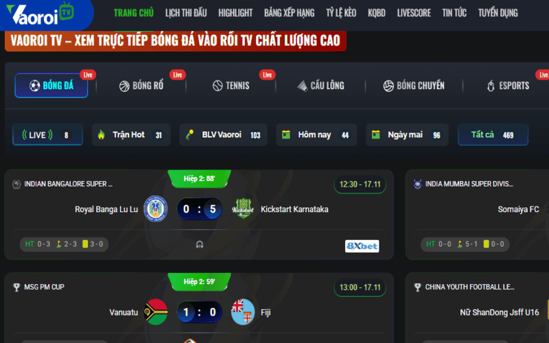 • Truy cập trang chủ Vaoroi TV: Tìm đến trận đấu bạn muốn xem trong lịch thi đấu bóng đá.