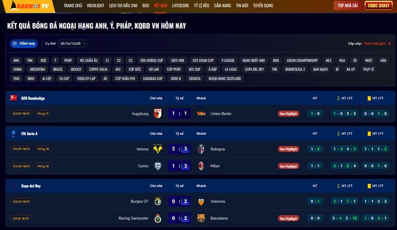 Không chỉ có các giải lớn, Rakhoi TV còn cập nhật kqbd 24h cho: