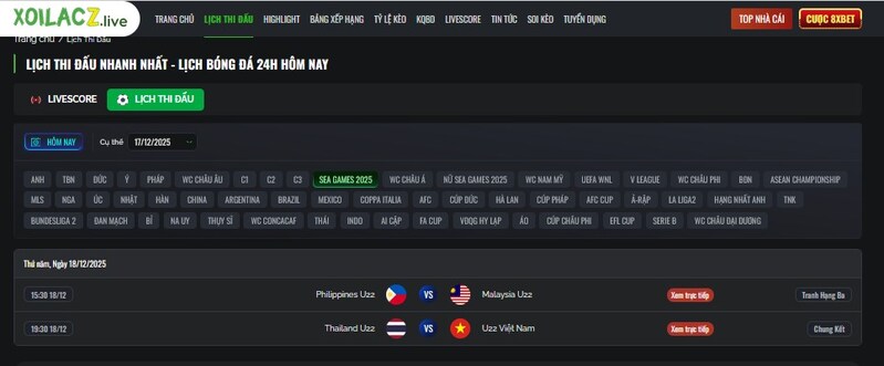 Xoilacz TV thường đăng link trước giờ bóng lăn, nhất là các trận: